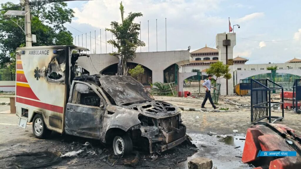 नेपाल में Zen Z का सरकार से सोशल मीडिया संचार के बंद होने से नाराज व साथ ही केपी ओली सरकार के भष्ठाचार के खिलाफ है , सरकार के खिलाफ मोर्चा खोल चुकी युवा संसद भवन में घुस गए , जिससे रोकने के लिए सुरक्षाबलों को जवाबी फयिरिंग करने पड़ी जिसमे 100 से अधिक लोग घायल हो गए व साथ ही कई लोगो का मौके पर ही मृत्यु हो गया